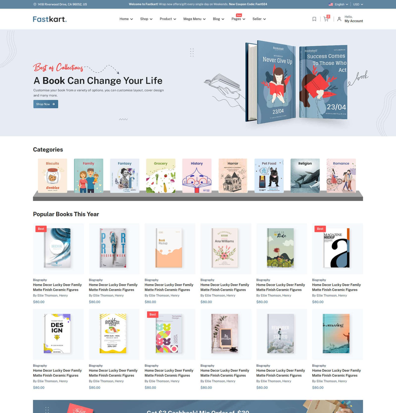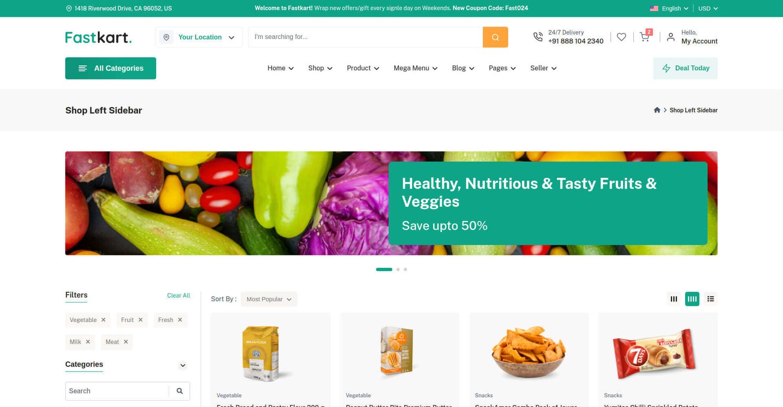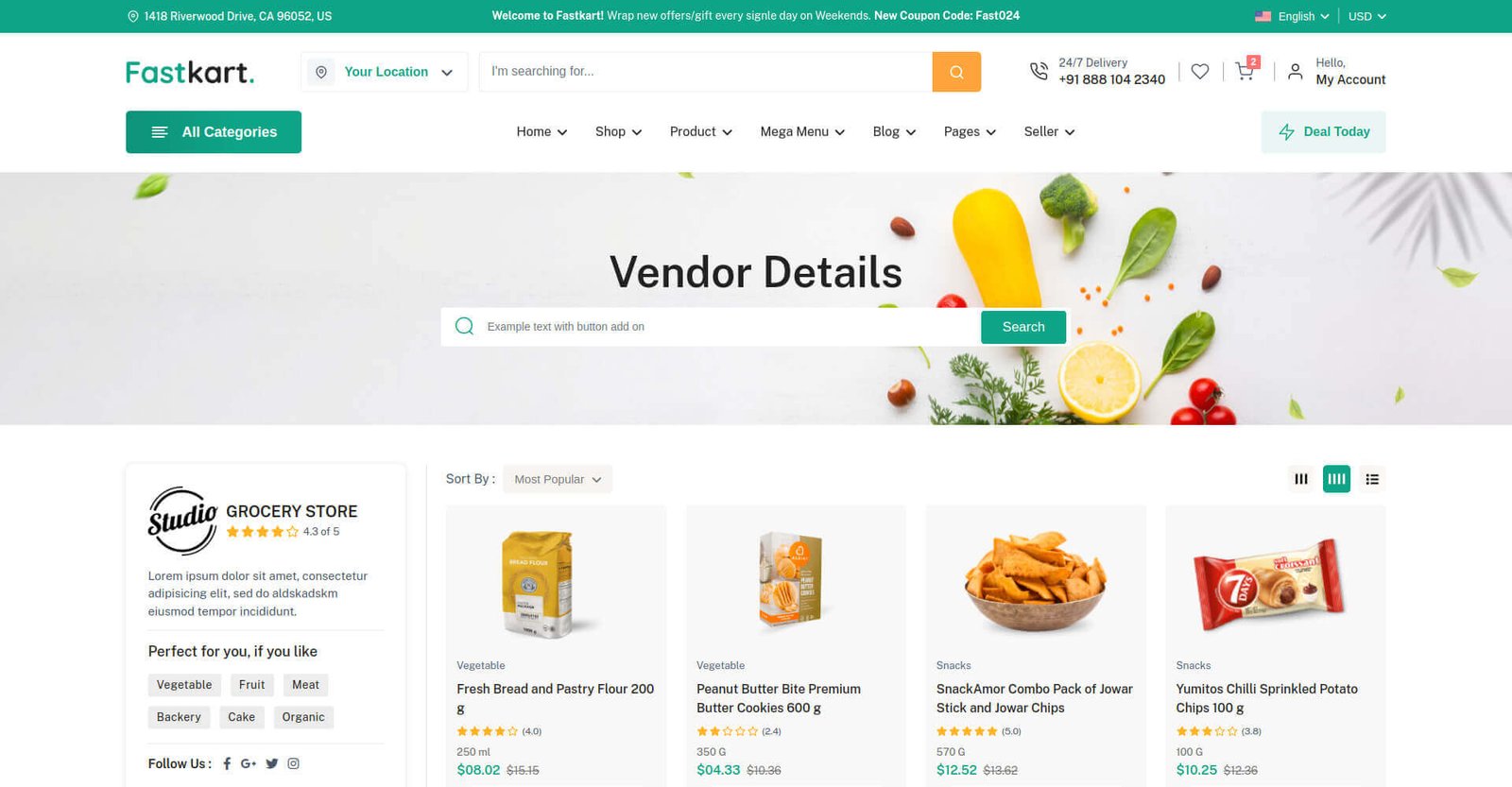 Fastkart comes with several headers and footer options for you to use on your website.