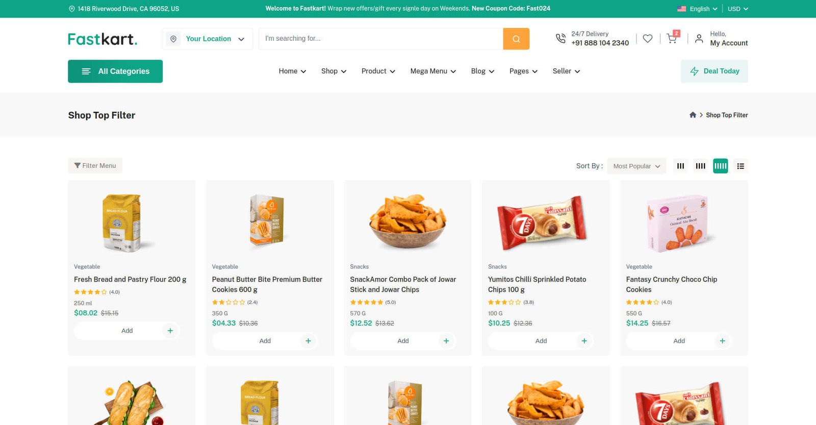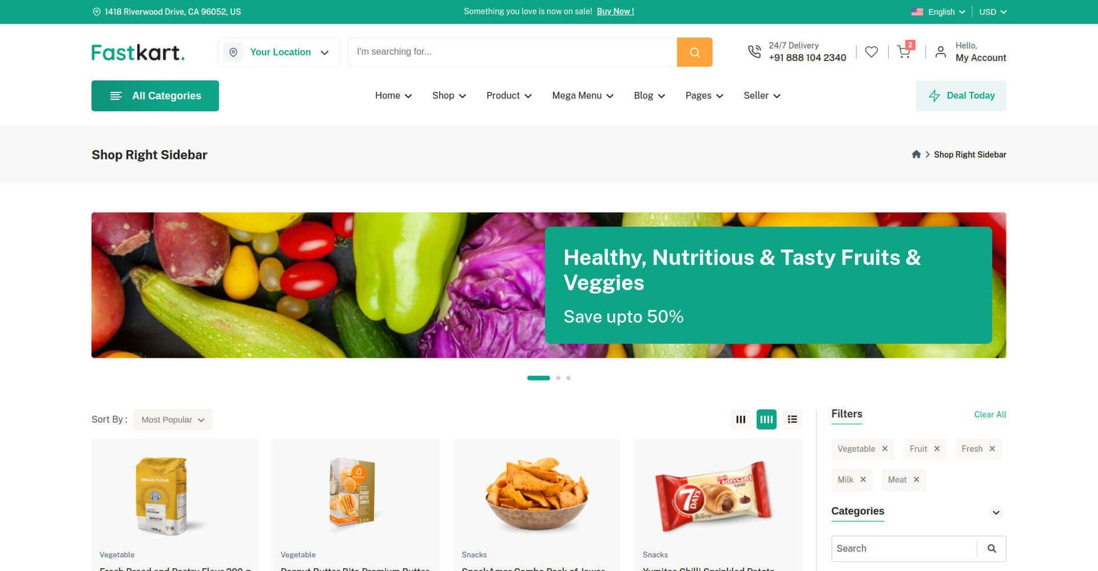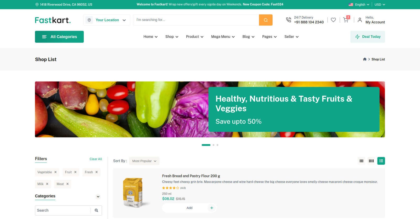 Fastkart includes 7 variations of Shop pages & 5 variations of Product pages.